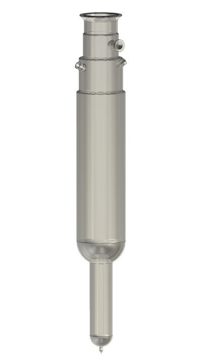 LHe Bad – Kryostate Typ KGS aus werden aus Borosilikatglas 3.3 nach DIN/ISO 3585 (DURAN) gefertigt und sind für den Einsatz von flüssigem Helium konzipiert. Die Kryostate besitzen ein LN2 Kühlschild, um den Wärmeeintrag auf das flüssige Helium zu reduzieren. Da Borosilikatglas 3.3 (DURAN) nicht Helium diffusionsdicht ist, müssen Glaskryostate so aufgebaut sein, dass diese im LHe Tankbereich nachevakuierbar sind. Als Vakuumanschluß wird serienmäßig ein Glasflansch NW 25 mit dazugehöriger Klammer und O – Ring verwendet, so dass mit Kleinflanschbauteile aus Metall die Verbindung zur Vakuumpumpe hergestellt werden kann. Auf Wunsch kann als Pumpflansch auch ein Vakuum Glashahn oder ein aufgeklebter Metallflansch angeboten werden. Die Kryostate besitzen einen Schottflansch mit O-Ringnut als Kopfflansch.